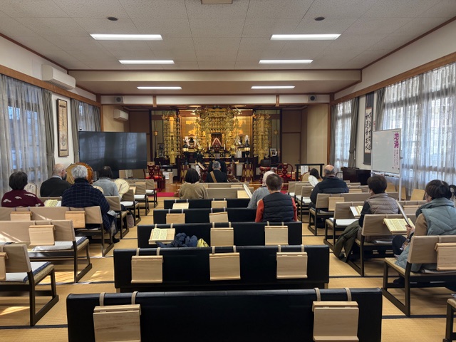 その後行われた支院法座では、参加者の皆さんで今年一年の誓い・抱負・目標について語り合いました。皆さんから出て来たキーワードは、堪忍・感謝・行住坐臥のお題目・支院巡りへの挑戦・家族で支え合い、励まし合うなどがありました。