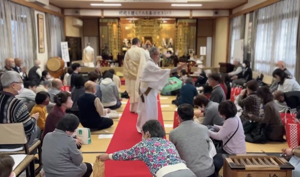 2月11日、本山より後藤亮学上人、大庭正圓上人をお迎えし節分会が厳修されました。この日は朝から小雨が降り続いていましたが、正午になるとその雨もピタッと止み、寒さも少し緩みほっと胸を撫で下ろしました。